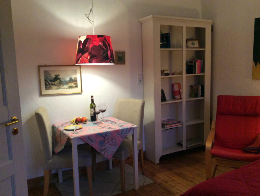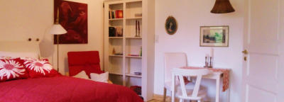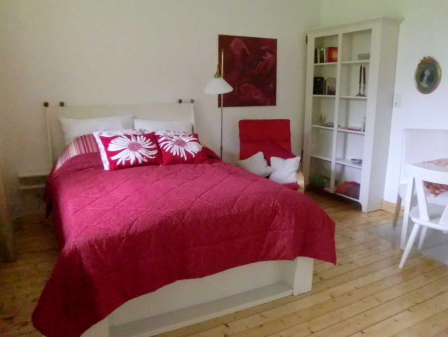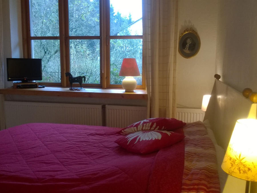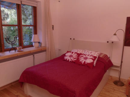Unter dem relativ hohen französischen Bett (1,40m breit)